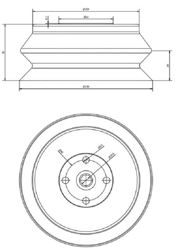 قاپک سیلیکونی با قطر خارجی 125 میلیمتر و دارای صفحه آلومینیومی و دو پله می باشد.نقشه در عکس ها پیوست شده است .